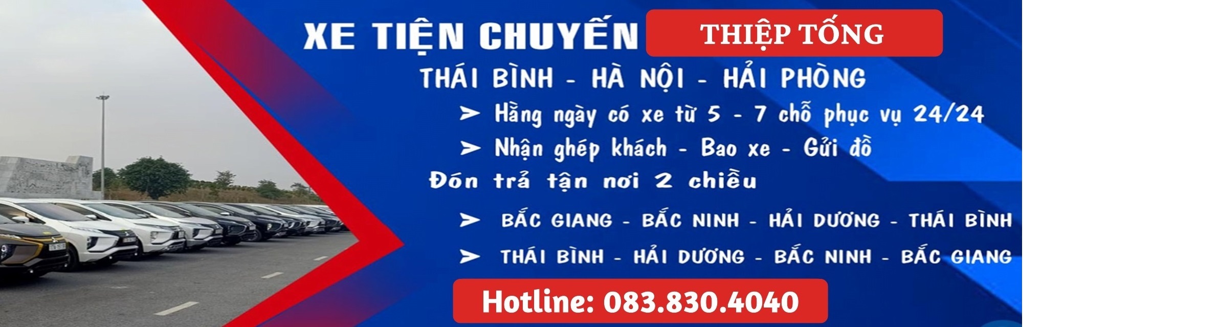 Xe Ghép Tiện Chuyến Thái Bình – Hà Nội xin trân trọng gửi tới Quý khách hàng lời chúc sức khỏe và thành đạt trong cuộc sống để được dịch vụ taxi tốt quý khách vui lòng liên hệ: 083.830.4040